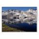 Lago alpino prístino reflejando picos montañosos en una mañana clara en junio de 2007.