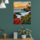 Este elegante poster abstrae maravillosamente el encanto costero por excelencia de Laguna Beach, California. Transforma el paisaje familiar del océano, la playa y las palmeras balanceadas en un cautivador conjunto de formas y colores. Las obras de arte utilizan líneas suaves y fluidas para representar las suaves olas del Océano Pacífico, uniéndose a la perfección en las costas arenosas representadas en tonos cálidos y arenosos. Las palmeras están estilizadas como formas elegantes y curvadas que se extienden hacia arriba, contrastando con un cielo pintado de azul sereno y sutiles toques de rosa puesta de sol. Esta interpretación abstracta no sólo capta el ambiente relajado de Laguna Beach, sino que también aporta un toque sofisticado a cualquier espacio habitable, lo que lo hace perfecto para los amantes de la costa y de la tranquilidad.