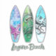 Trio de elegantes tablas de surf decoradas con texto de Laguna Bay - el diseño perfecto para los que aman la pequeña comunidad costera del sur de California conocida por sus puntos de surf, sus galerías de arte y la hermosa moda Boho