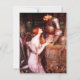 Lamia de John William Waterhouse y las invitaciones del soldado. Pintura al óleo en lona a partir de 1906. El Waterhouse de Juan representó con frecuencia figuras mitológicas, y el Lamia y el soldado es un ejemplo precioso de su amor de figuras mitológicas femeninas. El Lamia se sienta en los pies de un soldado revestido en armadura metalizado en un vestido rosado con un piel de serpiente envuelto sobre su brazo y basura. Una toma medieval hermosa en un tema clásico. Un gran regalo para las fans de J.W. Waterhouse, mitología griega, los Pre-Raphaelites, pintura romántica inglesa.