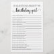 Compra este juego y disfruta de 20 preguntas de alta calidad sobre la tarjeta de Chica de cumpleaños para tu evento! Diseño en blanco y negro.
