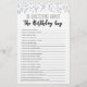 Compra este juego editable y disfruta de la tarjeta de alta calidad 20 preguntas sobre el cumpleaños de Boy para tu evento! Esta es una plantilla de juego, ¡Puedes cambiar las preguntas como quieras! Diseño temático de confeti plateado.