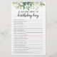 Compra este juego de vegetación editable y disfruta de la tarjeta de alta calidad 20 preguntas sobre el Birthday Boy para tu evento! Esta es una plantilla de juego, ¡Puedes cambiar las preguntas como quieras! Diseño temático de acuarela.