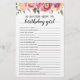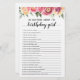 Compra este juego editable y disfruta de la tarjeta de Chica de alta calidad 20 Preguntas sobre el Cumpleaños para tu evento! Esta es una plantilla de juego, ¡Puedes cambiar las preguntas como quieras! Acuarela Flores florales diseño.