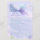 "Una pequeña y dulce Sirenita está en camino", "Under the Sea" (Bajo el mar), fiesta de duchas de bebé con temática de niñas. Colores acuáticos de tonos morados y azules pastel, con una cola de sirena juguetona, peces payasos y corales.