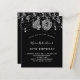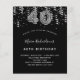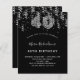 Una invitación moderna, elegante y glamurosa para un fiesta de 40 años. Un fondo negro, decorado con confeti plateado. El nombre está escrito con una escritura de estilo con letras a mano moderna. Personalice y agregue los detalles de su fiesta. El número 40 está escrito con un tipo de letra a la moda en globo, una letra leopard print.