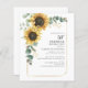 Eucalyptus Sunflower Floral Script 50th Birthday Invitation puede personalizar fácilmente con los detalles de su fiesta haciendo clic en el botón "Personalizar". Con flores y vegetación amarillo brillante suculento con un marco geométrico de Relieve metalizado dorado y tipografía moderna