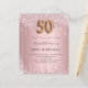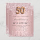 Una invitación moderna, elegante y glamurosa para una fiesta de cumpleaños número 50. Un rosa polvoriento, color rosa falso metálico con un falso goteo purpurina, pinta con goteo. El nombre está escrito con un guión moderno de estilo con letras de color gris oscuro. Personalice y agregue los detalles de su fiesta. El número 50 se escribe con un tipo de letra, guión.