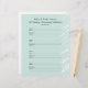 Esta página de inicio de sesión personalizada de relleno de 8,5" x 11", en un diseño verde azul con letras negras, está personalizada y es perfecta para rellenar libros de memoria de Fiesta de aniversario o libros de invitados de estilo binder. Este papel de relleno del bloc de notas es fácil de personalizar: cambiar nombre, título del evento y eliminar o modificar fecha. La página está pre-formateada para que los asistentes agreguen su información de contacto y un mensaje a medida que inician sesión, 4 nombres por página. Tendrás que perforar agujeros para que encajen en tu encuadernador. Todos los derechos reservados © 2014 Alan & Marcia Socolik