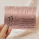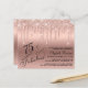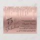 Elegante y asequible invitación a la fiesta de cumpleaños número 75 con "75 & Fabulous" en un guión elegante contra un fondo de oro rosa con goteo de rosa de purpurina de imitación de oro.