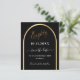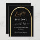 Una tarjeta Save the Date para una fiesta de cumpleaños número 80. Un fondo negro, decorado con un falso arco dorado. Personalice y agregue una fecha y su nombre. El texto: Ochenta y Guardar la fecha está escrito con un gran guión de estilo a mano a la moda. 1 hoja = 1 guardar la fecha de borde impreso en borde.