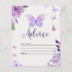 Dé tu consejo a esta futura mama con esta tarjeta de consejo de ducha de personalizable. Lindo diseño para tu baby shower de niña con una Hermosa Tematica de Mariposas y flores en acuarela en tonos Rosas y Purpuras. ideal para recibir a esa dulce niña que viene en camino!.