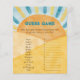 Única acuarela Sunshine temática Baby Shower Baby Adivina Tarjeta de juego en colores amarillo, azul y naranja quemado.