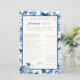 Celebra a la futura madre con esta elegante carta de juego "Who Knows Best", decorada con mariposas azules de ensueño y acentos dorados. Los huéspedes podrán adivinar datos divertidos sobre la futura mamita, que provocarán risas y dulces recuerdos. ¡Un hermoso recuerdo para un día alegre! Si te gusta este estilo pero lo quieres en otro producto, simplemente envíanos un mensaje: ¡lo crearemos gustosamente para ti! Que su día especial sea inolvidable. Saludos cálidos, estudio ArtfulGreetings 💙 🦋