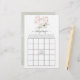 Tarjeta de juego de bingo con ducha para bebés, con flores anémonas y hojas de eucalipto en un corazón geométrico de oro rosa.