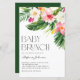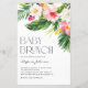 Invite a los invitados a su evento con esta invitación de personalizable para la papelería de brunch. Cuenta con ilustraciones acuáticos de hojas de palma, hojas de plátano, hibiscos, plumeria y otras plantas tropicales. Personalice esta invitación tropical al baby brunch añadiendo el nombre, la hora, la fecha y otros detalles del evento. Esta invitación al brunch es perfecta para las duchas de verano.