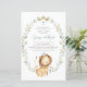 Invite a su familia y amigos a su evento de bautismo con esta invitación de personalizable. Cuenta con ilustraciones acuarelas de un lindo precio de león bebé y una corona de follaje con un patrón a juego. Personalice agregando nombre, fecha, hora, lugar y otros detalles del evento. Esta invitación al bautismo de león es perfecta para los bautismos de niños.