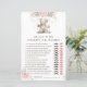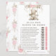 Lámina Adivina de Baby Shower con flores rosas de oso qui
