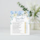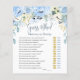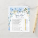 Adivinen quién mami o papi Baby Shower Game - Este diseño presenta un ilustracion acuarela de peonías y anémonas azules, grises y cremas suaves. En la parte superior de la tarjeta - confeti de efecto plateado.