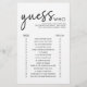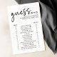 ¡Sube tu ducha de novia con esta moda, minimalista juego adivina quién! Traer un toque moderno al juego clásico con este diseño blanco y negro elegante. Este moderno juego de adivina quién es la actividad perfecta para hacer que la futura novia y sus invitados se mezclen y se rían. Con un estilo limpio y minimalista, se añade un toque elegante a cualquier celebración de la ducha de novias. Personalizar las cartas del juego con preguntas divertidas sobre la pareja para iniciar la conversación y la risa.