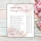 Celebra la ducha de bebé con el juego interactivo "Mamá o papi adivina quién", creando recuerdos alegres y emoción entre los invitados. 14 interesantes preguntas donde los invitados adivinan a quién se describe cada declaración, a la madre o al padre. El elegante diseño rosa floral crea un ambiente minimalista y encantador para el evento, para un día lleno de amor, alegría y momentos apreciados. Utilice las herramientas de diseño para personalizar del texto y las fuentes.