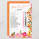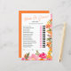Haz que tu ducha de novia sea extra divertida con esta tarjeta de juego "¿Novia o Adivina quién?" que presenta un diseño floral de acuarela vibrante. Con una mezcla de preguntas lúdicas y alegres como "¿Quién hizo el primer movimiento?" y "¿Quién es el mejor bailarín?", los invitados pueden dar vuelta sus respuestas y ver quién conoce mejor a la pareja. Los toques florales, rosa, naranja y amarillo pintados a mano le dan un toque luminoso y animado, ideal para las duchas boho o floridas. ¡Un gran rompehielos y un gran placer para la futura novia!