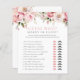 Adivinen quién es la mami Daddy Pink Floral Baby Shower Game con hermosas flores rosadas y vegetación junto con caligrafía moderna.