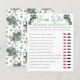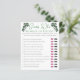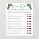 Este elegante juego de Baby Shower del Día de San Patricio o Irlandés se llama "Adivina quién". El diseño: dibujado a mano con tinta negra, esta tarjeta presenta detalles de esquina de inspiración vintage dibujados a mano y un bonito shamrock verde, todo con un elegante fondo blanco. Cómo jugar: a cada invitado se le da una carta y un lápiz. Cada huésped adivina qué respuesta han dado mamá y papá y gira en torno a los labios (mami) o al bigote (papi). El invitado con las respuestas más correctas gana el juego.