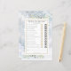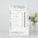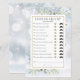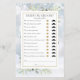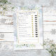 Con delicadas hojas de greenery de acuarela sobre un fondo de copos de nieve de invierno, este divertido juego de té de despedida de soltera puede ser personalizado con tus propias preguntas de adivina quién. Diseñado por Thisisnotme©
