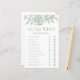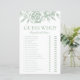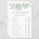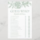 La chapa de la ducha de novia es elegante, moderna, moda y encantadora, perfecta para una boda de jardín, botánica, rústica, romántica, floral, formal o vintage. Su exquisita combinación de rosas verdes elegantes y salvajes es florida, delicada y hermosa. Su diseño monocromático es impresionante y clásico. Este juego divertido y fácil seguro que trae muchas risas a cualquier ducha de novia. Simplemente dé una hoja a cada huésped (no se olviden de los bolígrafos) y deje que comience la conjetura! Para hacer de este juego su propio juego simplemente seleccione Personalizar esta plantilla y escriba los nombres de la novia y el novio.