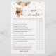 Compra esta tarjeta editable y disfruta de una gran calidad Aditivo o Bajo Juego para tu evento! Esta es una plantilla de tarjeta, Usted puede personalizar la tarjeta, cambiar el texto como desee! ¡Actividades de Baby Shower! Juego de adivinanzas de oro y marrón.