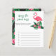 El diseño de la invitación a la ducha para bebés incluye flamencos rosas con frontales verdes de hojas de palma y flores de hibisco tropicales. "Aloha Baby". Un patrón floral tropical con color de fondo negro se viste por la parte posterior de la tarjeta.