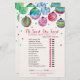 Este juego de adornos de Navidad "él dijo ella dijo" es perfecto para una despedida de soltera en diciembre. La parte frontal de la tarjeta del juego presenta "él dijo ella dijo", que es un divertido cuestionario sobre la novia y el novio. La parte trasera de la tarjeta presenta una búsqueda de palabras con palabras y frases relacionadas con la boda. El diseño presenta texto en letra cursiva roja con adornos colgando en la parte superior de la tarjeta del juego, y confeti colorido rojo, verde y azul que cae hacia el texto. Personalice la tarjeta del juego con el nombre de la novia y la fecha de la despedida de soltera.