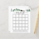 Tarjeta de bingo con ducha de bebé con árboles de color agua verde, montañas y mamá con oso de bebé. Una manera divertida de interactuar con los invitados de la ducha mientras la futura mamita abre sus regalos.