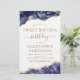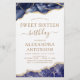 Invitaciones al partido de cumpleaños de la Marina Geode Blue y Relieve metalizado dorado - incluye un moderno y elegante guión para la celebración especial de cumpleaños número 16.