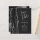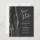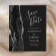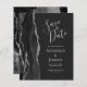 El borde izquierdo de esta elegante y moderna boda, salvo la tarjeta de fecha, cuenta con un borde de batida de color negro con falso purpurina plateado. El texto del personalizable combina la escritura a mano gris plateado, el copperplate y las fuentes cursivas en un fondo fuera de negro. El reverso presenta un diseño de ágata negro y plateado a juego.
