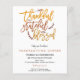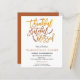 Agradecida invitación a la cena de Acción de Gracias. Una alternativa económica para SMALLER de 4,5" x 5,6". Disponible en un ALMACENAMIENTO DE TARJETAS SEMI GLOSS 110 lb o en un SATIN FINISH DE PAPEL DELGADO DE 80 lb. Los sobres son un extra opcional. Palabras inspiradoras Agradecidas, agradecidas, bendecidas en un guión elegante en colores otoñales están en la mitad superior, y los detalles están debajo en un fondo blanco. Personalice fácilmente el texto con sus detalles.