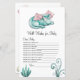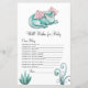 Chica Verde azulado Dragón Nubes rosadas muy deseadas para el juego del bebé. Esta encantadora tarjeta de buenos deseos es excelente para muchas ocasiones, como duchas para bebés, fiestas de cumpleaños, recienes nacidos, bautizo, bautizos y más. Se trata de un caprichoso dragón verde con alas rosas sobre una nube azul, rodeado de elementos naturales como piedras, nubes y plantas de colores pastel de rosa, azul y verde. Para alterar textos, reorganizarlos y formatear su estilo y ubicación, sólo tiene que hacer clic en el botón personalizar. Elementos coincidentes disponibles en el almacén.