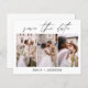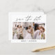 Ahorra la fecha moderna y elegante paisaje horizontal tres (3) foto imán de boda con tipografía de letra manuscrita. El imán de invitación de save the date incluye tipografía de letra manuscrita y diseño chic y simple que puedes agregar a tu fotografía de compromiso personalizada.