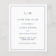 Ahorro simple save the date con un diseño moderno y elegante con su monograma de dos letras en la parte superior y los detalles de la boda rodeados de un borde delgado. Todos los elementos de diseño están en azul marino y pueden ser cambiados en la herramienta de edición de diseño. Un diseño chic y elegante que es ideal para una pareja minimalista.