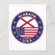 Insignia de Alabama con bandera de Alabama y bandera de los colores de Estados Unidos, forma redondeada. Emblema de Alabama. Sello de Alabama. Colección de Estados Unidos.