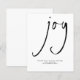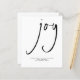 Alegría presupuestaria Elegante Guión Vacaciones en Blanco Negro. Una tarjeta plana SMALLER de 4,5" x 5,6" para sus saludos festivos en una brillante tarjeta SEMI GLOSS de 110 lb (similar al espesor de una postal) POR FAVOR NOTE: el sobre suministrado con esta tarjeta es ligeramente más grande que la propia tarjeta. La alegría está escrita a mano con estilo y personaliza fácilmente tu saludo y nombre. Mostrado en blanco y negro clásico. Se pueden realizar cambios en los colores del texto y del fondo si se desea a través de la opción personalizar.