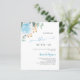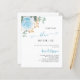 Un fondo blanco moda. Decorada con una flor azul polvorienta, flor rosa y hojas de eucalipto de color verde acuático, brotes, vegetación y una falsa primavera dorada. Personalice y agregue el nombre de la novia a ser y detalles. Texto: Algo azul antes que yo. 1 hoja = 1 invitación de ducha de novia con borde impreso a borde.