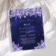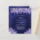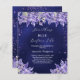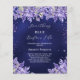 De fondo azul marino, el color azul es desigual. Decorada con bordes de lavanda y polvo falso purpurina de color. Personalice y agregue un nombre y detalles del fiesta. Texto: Algo azul antes que yo. 1 hoja = 1 invitación de ducha de novia con borde impreso a borde.