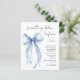 Elegante invitación a una ducha de novia con presupuesto reducido que incluye una delicada acuarela de un arco de coqueta azul y "algo azul antes que yo" en un guión de moda. Este papel semibrillante de presupuesto es similar en peso al papel fotográfico. También está disponible una versión de tarjeta tradicional 5x7 más gruesa (envíenos un mensaje para el enlace).