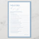 Diviértase en su ducha/soltera nupcial con este juego genial, con un elegante fondo azul y un texto editable. Personalizar si es necesario haciendo clic en "editar usando la herramienta de diseño".