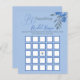 Elegante caligrafía Script Algo Blue Bridal Shower Tema Boda Bingo Divertido juego con flores acuarelas. Por el otro lado, se pueden tomar copas de champán con un ramo.