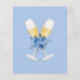 Elegante caligrafía Escribir algo de ducha azul nupcial Tema adivina el juego gracioso de vestir con flores acuarelas. Por el otro lado, se pueden tomar copas de champán con un ramo.