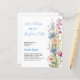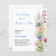 Un fondo blanco moda. Decorado con flores silvestres de color rosa, azul y amarillo. Personalice y agregue el nombre de la novia para ser y los detalles del fiesta. Texto: Algo azul antes que yo. 1 hoja = 1 borde impreso de invitación al borde.