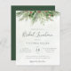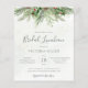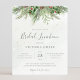 Hermosas invitaciones para almuerzo nupcial asequibles con ilustraciones botánicas pintadas a mano en acuarela de verdor invernal, ramas de pino y abeto, conos y bayas de acebo. La elección perfecta para bodas temáticas de invierno o vacaciones de Navidad.